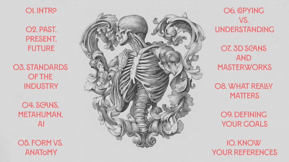 Instead, it’s a series of dynamic, industry-focused lectures that dive into the real anatomy essentials needed for video games, film, and cinematics (not a single name of a muscle or a bone is mentioned, don’t worry). Having worked on 3D character and creature projects across all types, I’ve developed a unique analytical approach to what matters most for impactful character execution. Drawing from years of experience with top studios (Blur Studio, Ninja Theory, Prime 1 Studio), I’ll guide you through what truly matters in character and creature anatomy — and what you can skip.